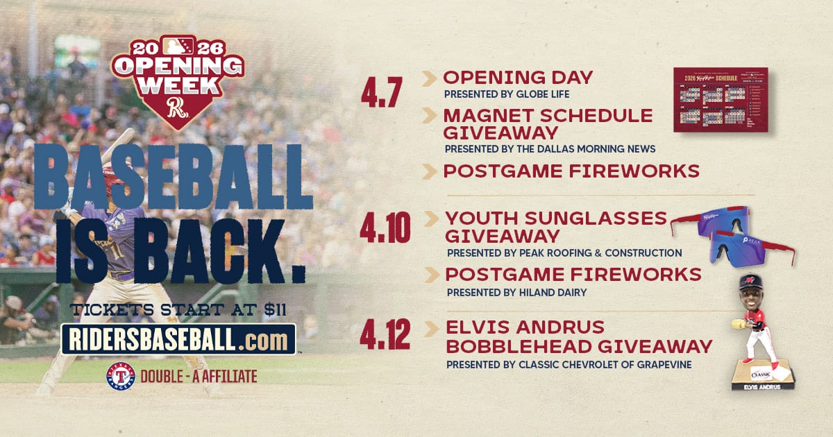 Baseball is back in Frisco! The RoughRiders tee off their 2026 campaign against the Midland RockHounds this week, and we’re here to hook you up with some tickets!